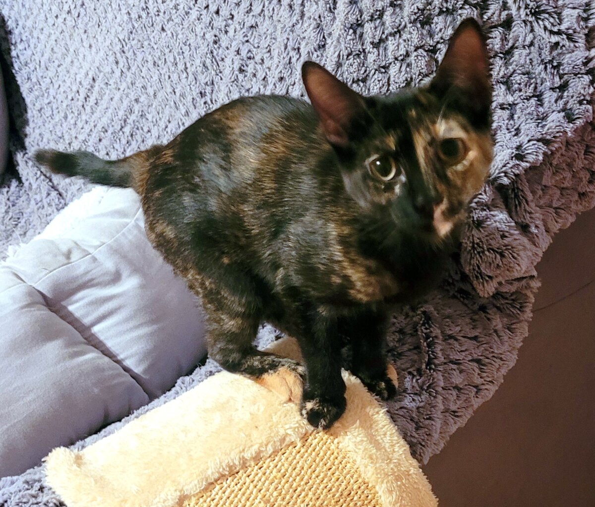 Die Schildpattmädchen Britney  und Moon haben sich zu verspielten, munteren und schmusigen Katzen entwickelt.