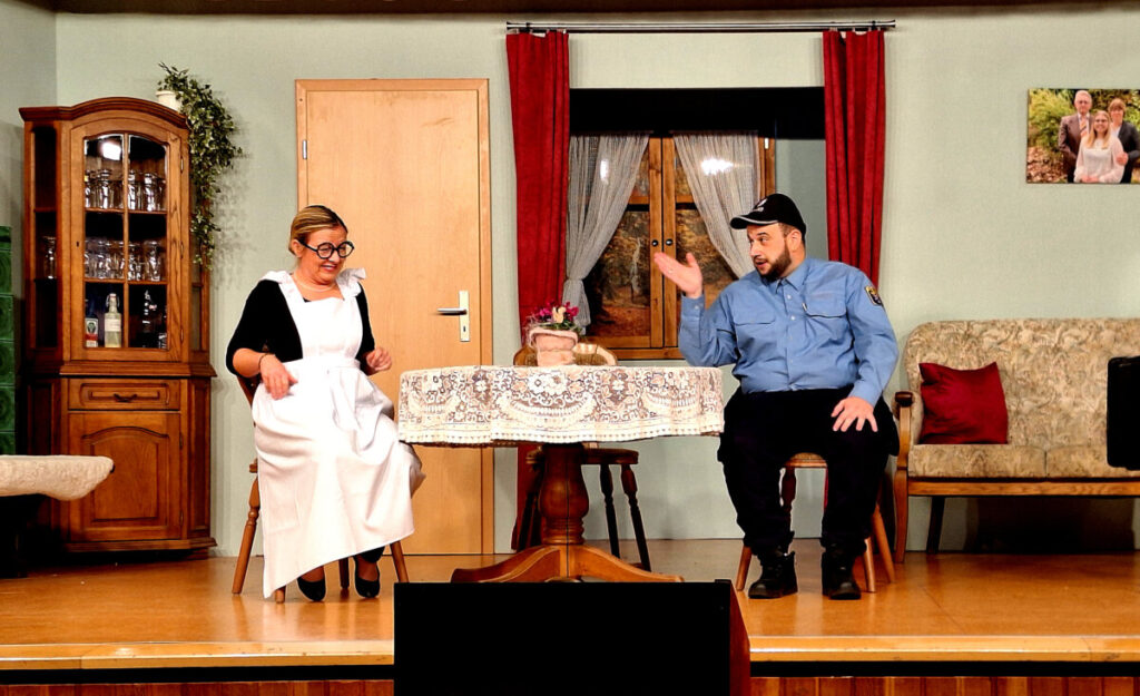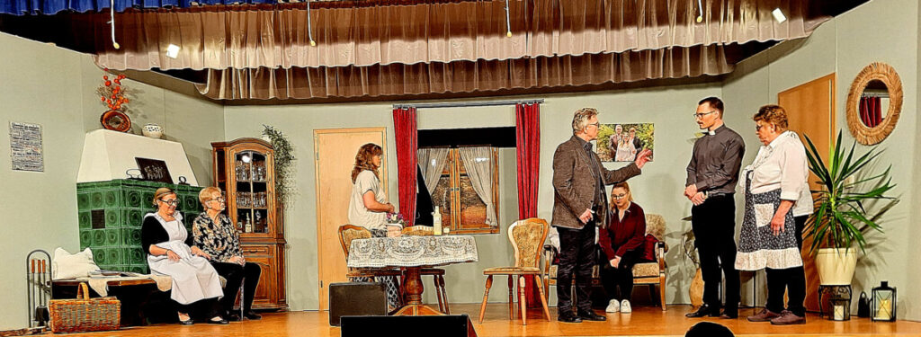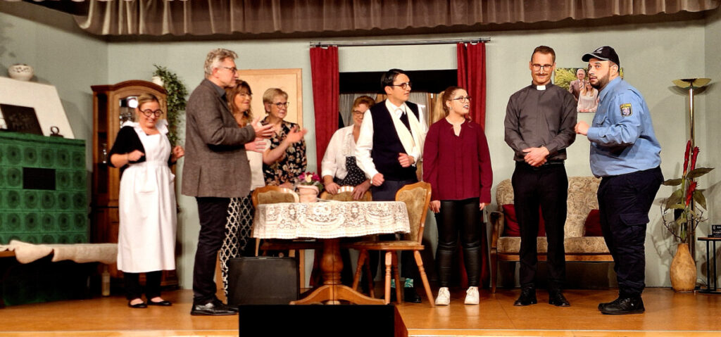 Doch weil sich der nervöse Ratsschreiber zuvor beim Mut antrinken ein Glas zuviel gönnt, verwechselt ER die Fenster und landet vor dem Haus der Pfarrhaushälterin, wobei der Ärger vorprogammiert ist! So entsteht eine unterhaltsame Geschichte über die Suche nach dem Schuldigen, die vor Verwicklungen nur so strotzt. Es gab bei jeder Szene Lacher aus dem Publikum und mit Applaus wurde nicht gespart.