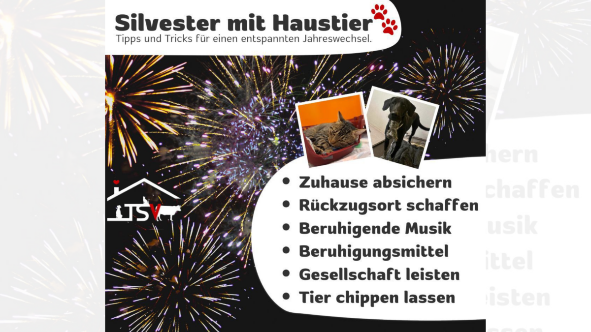 Hierbei denken Sie bitte auch daran, dass es Personen gibt, die schon vor Silvester böllern. Geben Sie daher in den Tagen vor Silvester auch schon acht auf Ihre Tiere!🐶 🐱