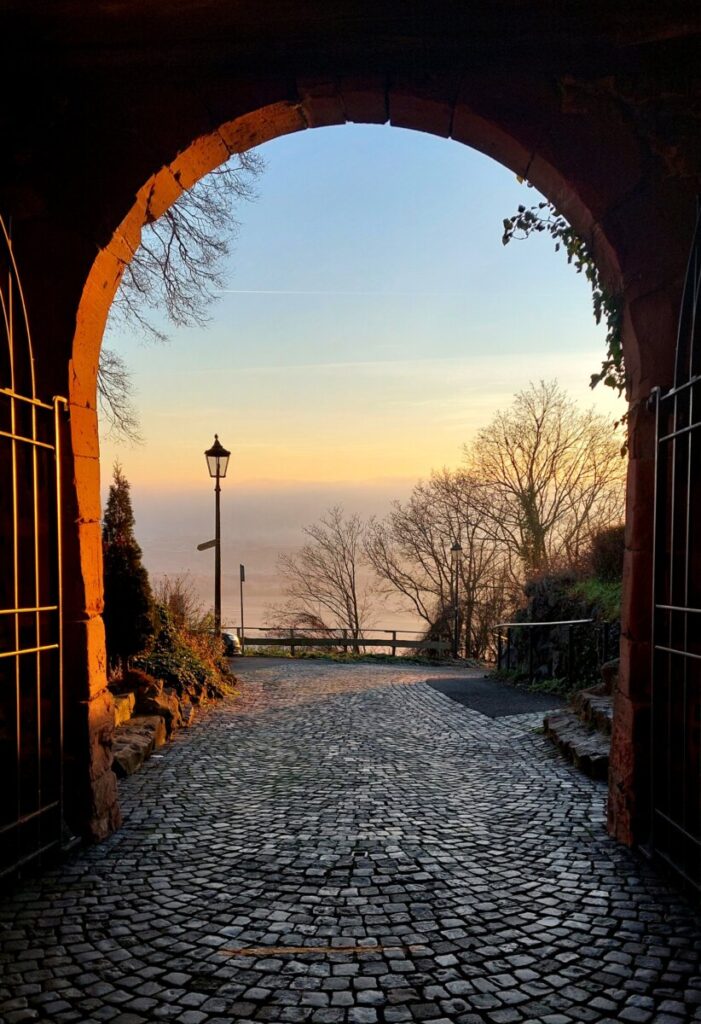 Blick ins Land von der Burg Gleiberg Von Irmtraut Gottschald - 12. Januar 2025 97 Auf dem Weg zur Burg Gleiberg. Sie läßt sich zwischen dem Nebel sehen. Die Sonne geht gleich unter Blick durch das Tor Fensterblick Gleich ist die Sonne weg