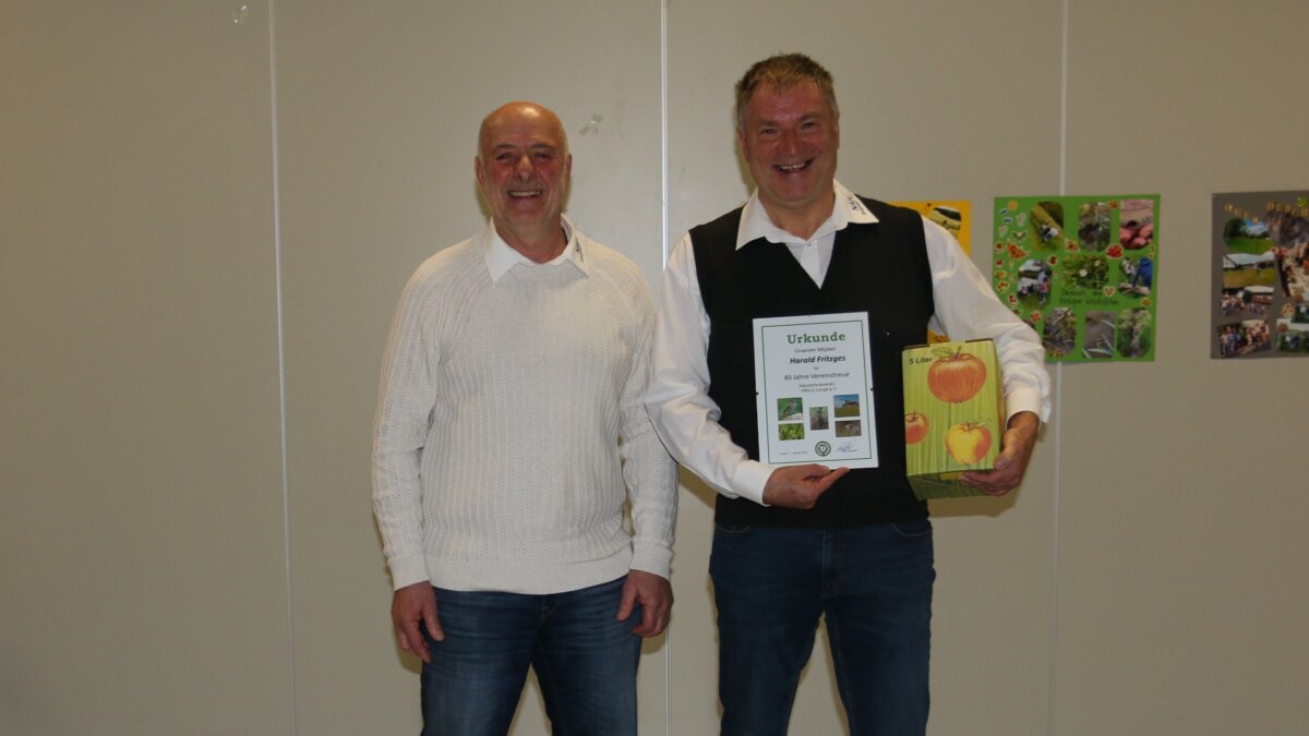 Vors. Bodo Fritz ehrt den 2. Vors. Harald Fritzges für 40 Jahre Vereinstreue