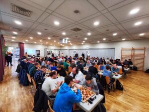 Spielerfeld. Unter den insgesamt 74 Schachspielern traten auch 16 Kinder und