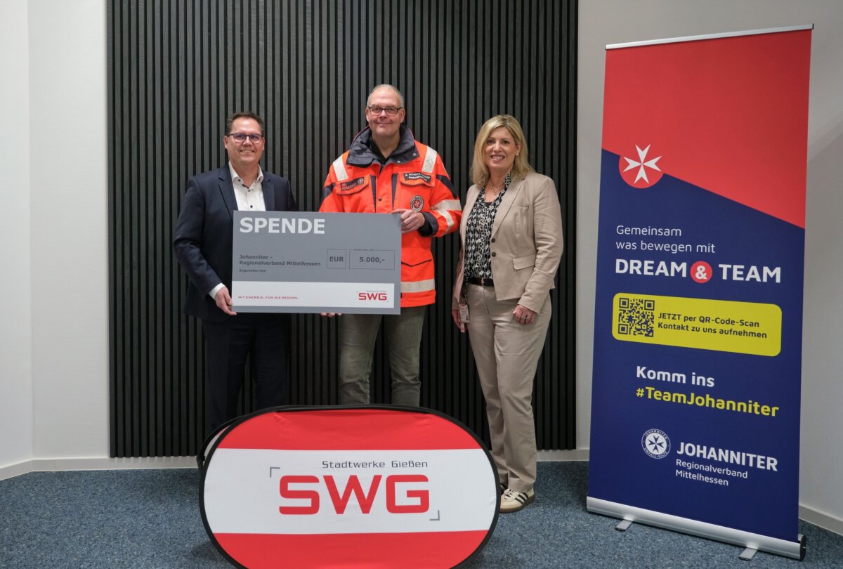 Die Stadtwerke Gießen unterstützen den Regionalverband Mittelhessen der Johanniter-Unfall-Hilfe e. V. mit einer Spende von 5.000 Euro.
