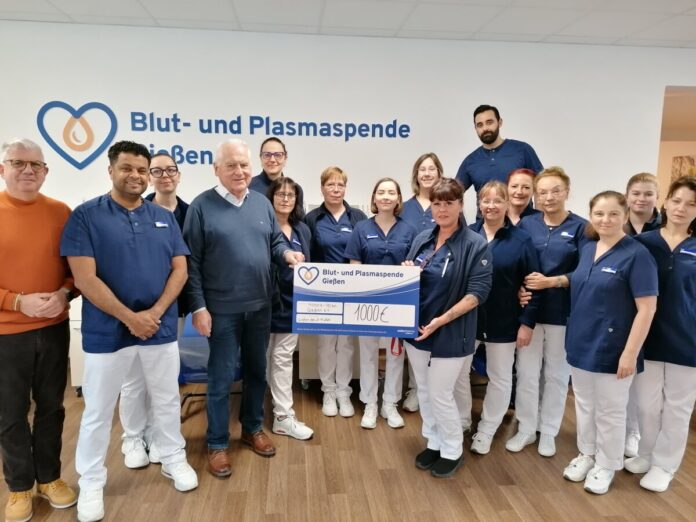 Gießen, 18. Dezember 2024 – Die Blut- und Plasmaspende Gießen hat eine Spende in Höhe von 1.000 Euro an den Hospiz-Verein Gießen e.V. überreicht. Die feierliche Übergabe an Erwin Kuhn, Vorsitzender der Initiative, fand in den Räumen des Spendezentrums in der Bahnhofstraße 96-98 in Gießen statt. Die Spende soll die wichtige Arbeit des Hospiz-Vereins unterstützen, der sich für die Begleitung und Betreuung schwerstkranker und sterbender Menschen sowie deren Angehöriger einsetzt. „Wir freuen uns, einen Beitrag zu dieser wertvollen Arbeit leisten zu können“, erklärte Galina Heidel, Leiterin der Blut- und Plasmaspende Gießen. Ausgesucht hatte den Hospiz-Verein Gießen das Team des Blut- und Plasmaspendezentrums. Die 24 Mitarbeitenden unterstützen wöchentlich rund mehrere Hundert Spender und Spenderinnen darin, mit ihrer Vollblut- oder Blutplasmaspende dazu beizutragen, dass schwerkranke oder schwerverletzte Menschen eine Chance auf ein gesünderes Leben bekommen. Da weder Blut noch Plasma künstlich hergestellt werden können, bleiben Blut- und Plasmaspenden für die moderne Medizin auch in Zukunft lebenswichtig. So können viele Krankheiten behandelt, Organtransplantationen durchgeführt und Unfallopfer gerettet werden.