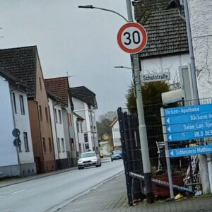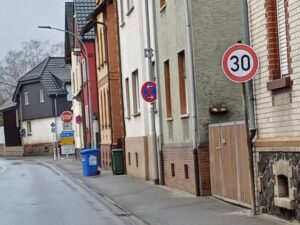 Es geht doch! Warum wurde dann dieses Geschwindigkeitsbegrenzungsschild hinter dem Ortsschild nicht in gleicher Weise eindeutig erkennbar montiert? Die “verwirrende Anordnung” von Schildern scheint ja nicht der Regelfall zu sein. Wenn die Geschwindigkeitsmessung lukrative Ergebnisse erzielen soll, werden offensichtlich entsprechende, Einnahmen steigernde Situationen geschaffen. Ein freies und bisher schilderfreies Trägerrohr ist ja nach dem Ortsschild vorhanden. Wahrscheinlich würden sich die meisten Autofahrer an eine klar erkennbare Beschilderung halten und müssten dann kein Verwarnungsgeld für Geschwindigkeitsübertretungen, resultierend aus Verwirrung stiftender Beschilderung, überweisen.