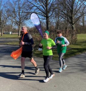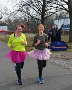 Am 15.3. geht es anlässlich des St Patrick’s Day in grün weiter, ehe man am 22.3. zwischen blau, orange und/oder Tutu wählen kann. Warum diese „Optionen“? Ganz einfach: Blau und orange sind die Vereinsfarben der LGV Marathon Giessen, die am 22.3. (fast) alle Helfendenpositionen besetzen und eine Woche später ihren beliebten Frühjahrslauf veranstalten wird. Und das Tutu hat bei parkrun weltweit Tradition an Samstagen, die auf den 22. eines Monats fallen, denn man kann 22 im Englischen als “two two” aussprechen und das klingt in dieser Sprache wiederum wie das Wort für das Ballettröckchen.