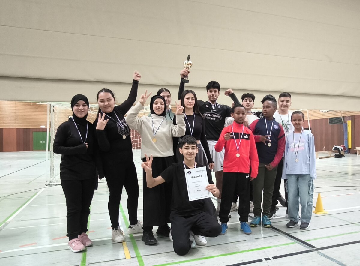 Die Jahrgänge 7 und 8 sowie die Deutsch-Intensiv-Klassen gingen im zweiten Teil des Turniers an den Start. Hier wurde zwar hart, aber sportlich sehr fair um den begehrten Pokal gekämpft. Sieger wurde in einem engen Kampf die Klasse Deutsch-Intensiv 2, die letztlich ungeschlagen blieb. Knapp dahinter, mit nur einer Niederlage im direkten Vergleich, landete die Klasse 7b. Ebenfalls eng fiel die Entscheidung um die Plätze 3 und 4 aus. Aufgrund eines besseren Punkteverhältnisses schaffte die Klasse 8M schließlich den Sprung aufs Podest und wurde mit einer Bronzemedaille für ihren Einsatz belohnt. Rang 4 belegte die Klasse Deutsch-Intensiv 1 vor der Klasse 7a.
