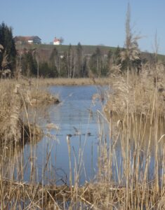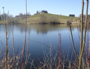 Vor ein paar Tagen gings an den letzteren, bis dato oft vorbeigefahren, aber immer im Kopf: da müsste es doch sicher einen Rundweg um dieses Gewässer geben. In der Tat gibt es einen solchen. Man sollte sich aber keine übertriebenen Vorstellungen machen: Die Wegweiser und Markierungen diesbezüglich sind sehr spärlich; man muss sich schon als Pfadfinder betätigen oder sich auf GPS o.ä. verlassen. Aber die phantastischen Ausblicke auf die Alpen entschädigen für alles.