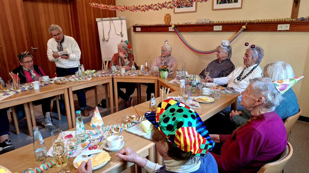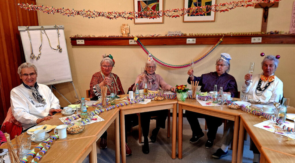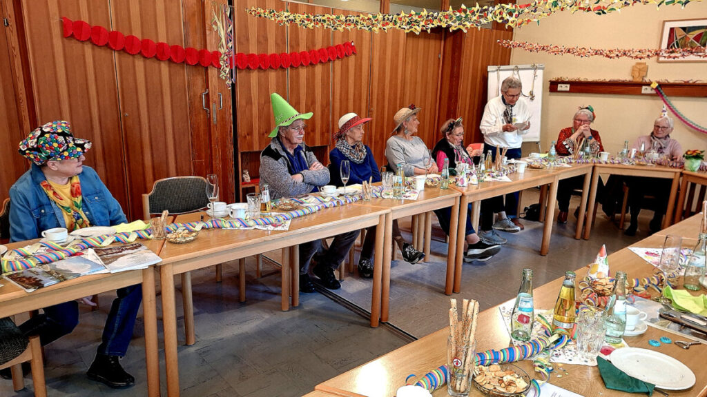Der Evangelische Seniorenkreis feierte seine Weiberfastnacht. Vorerst kommen die 20 Seniorinnen, darunter 3 Senioren, im 14- tägigen Rythmus – im kleineren Gemeindesaal – zum gemütlichen Beisammensein zusammen.  Die Runde wird mit geistlichen Worten von Pfarrerin Isabelle Röhr und Pfr. Eberhard Hampel, im Wechsel, eröffnet.