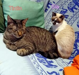 Kater Tintin und seine kleine Freundin, Thaisiam Mädchen Sia, sind ein “Herz und eine Seele”!