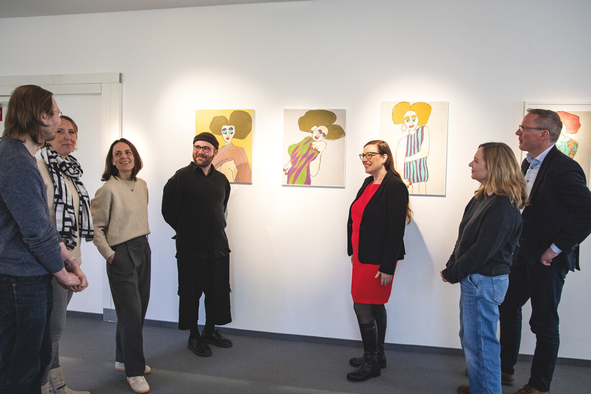 Dass Kunst ein perfekter Türöffner für Gespräche und Austausch ist, erlebt das Team der „Galerie23“ regelmäßig, zuletzt etwa bei der sehr gut besuchten Vernissage der aktuellen Ausstellung „Krawall“. „Wir haben ein ganz diverses, buntes Publikum“, berichtete Leiterin Andrea Lührig. „Wir kommen über Kunst, aber auch viele andere Themen ins Gespräch – auch über Politik. Es besteht auch hier die Sorge, dass Inklusion gefährdet sein könnte.“ Der Titel der neuen Ausstellung sei daher auch als eine Art Aufforderung zu verstehen: „Krawall machen für Inklusion und Diversität“, so Lührig. „Kunst und Kultur sind wichtig für ein gutes Leben“, betonte Heidt-Sommer, die unter anderem von Künstler Paul Wander einen Einblick in die im vergangenen Herbst neu bezogenen Räumlichkeiten der Galerie bekam. Deutlich wurde dabei auch die große Wertschätzung der Künstlerinnen und Künstler untereinander.
