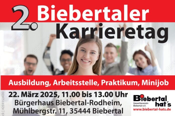 Am Samstag, dem 22. März findet von 11.00 bis 13.00 Uhr der 2. Biebertaler Karrieretag im Bürgerhaus in Rodheim statt. Verschiedene Unternehmen aus Biebertal und der heimischen Region liefern an bereitgestellten Tischen reichlich Informationen zu den Themen Ausbildung, Praktikum und Minijob sowie zu Arbeitsplätzen für jedes Alter. Somit ist nicht nur die Jugend für einen Besuch vor Ort angesprochen. Wir haben bereits etliche Zusagen von Mitmacher-Firmen erhalten. Wichtig ist, dass wir viele interessierte Besucher*innen im Bürgerhaus Rodheim willkommen heißen können. Deswegen: tue Gutes und rede darüber!