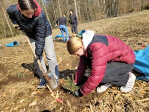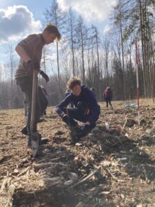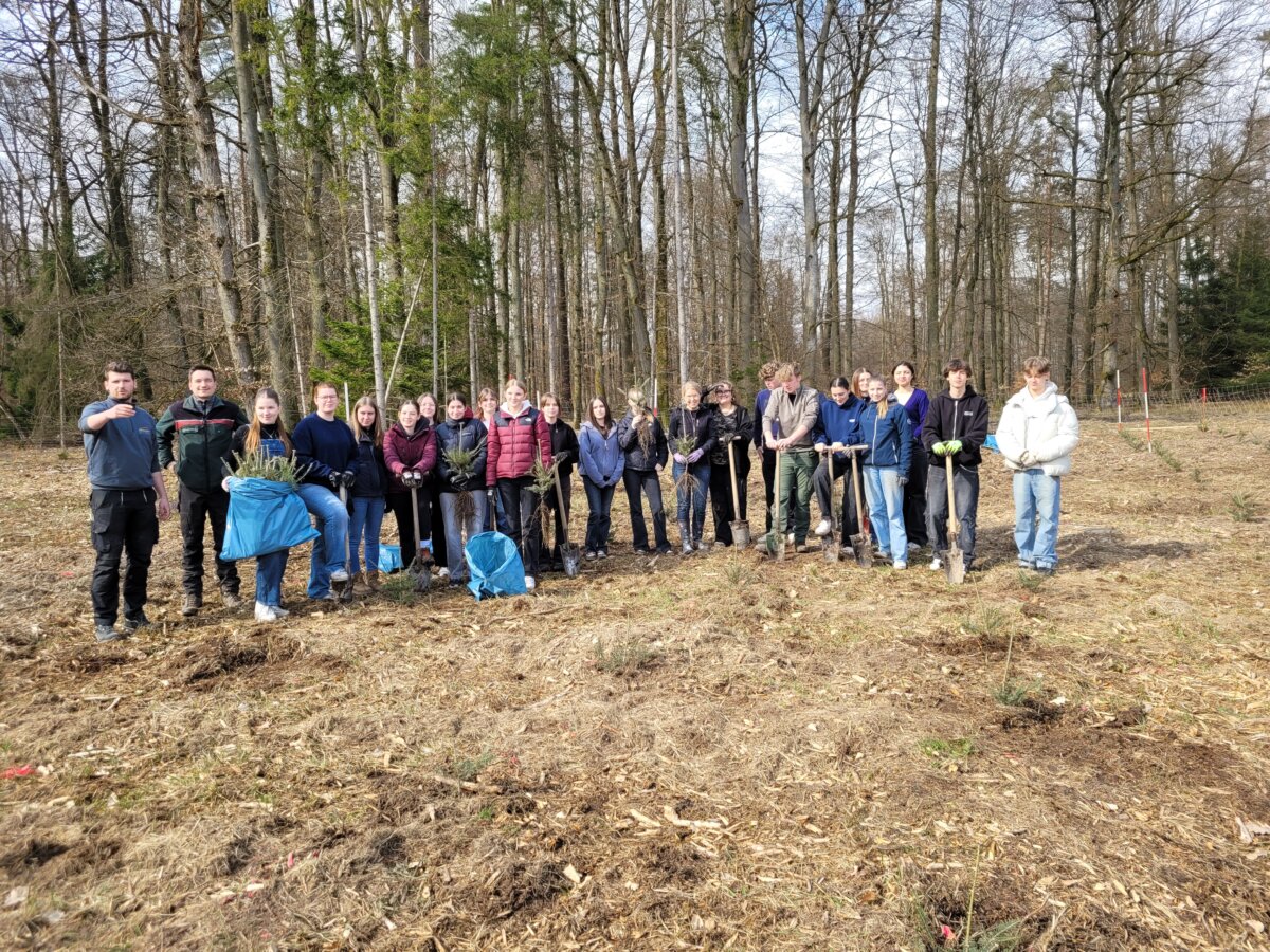 Mit Pflanzspaten ausgerüstet arbeiteten die Schülerinnen und Schüler in Zweierteams auf einer bereits umzäunten Fläche, die vor Wildverbiss geschützt war. Innerhalb von nur drei Stunden gelang es ihnen, 400 Setzlinge in den vorbereiteten Waldboden zu pflanzen. Trotz der körperlich anstrengenden Arbeit waren Engagement und Teamgeist deutlich spürbar, und auch der Spaß kam nicht zu kurz. Sätze wie „das können wir doch nächstes Jahr wieder machen“ waren mehrfach zu hören.