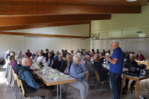 Mit großem Interesse folgten die Anwesenden den Ausführungen von Günter Zeuner beim allmonatlichen Seniorentreffen von Lardenbach und Klein-Eichen. Neben dem Erwähnen der zuhause weit mehr als im Straßenverkehr auftretenden Unfällen gab es besonders praktische Hinweise für ein unfallfreies Leben im eigenen Haushalt. Als Gründe für die hauptsächlichen Unfallvorkommnisse nannte der Referent die persönliche Überschätzung, die langgehegte Gewohnheit, eine fehlende Geduld und eine vielleicht nicht dem Gesundheitszustand korrekt angepasste Medikamenteninnahme. Wichtig seien für Menschen jeden Alters die regelmäßigen Arztbesuche mit den Vorsorgeuntersuchungen und die körperliche Bewegung und auch das Einhalten des von vielen Ärzten zumeist empfohlenen Rauch- und Alkoholverbotes. Zur Mobilität im Alter tragen auch digitale Assistenzsysteme, eine ausgewogene calciumreiche Ernährung, sich geistig fit halten und das Pflegen von guten Kontakten mit sozialen Bindungen wirksam bei. Tägliche Gymnastikübungen und eine regelmäßige Bewegung wie zum Beispiel durch Spazierengehen und zügigem Wandern förderten ebenfalls den Erhalt der Fitness. Besonders wichtig ist die Stärkung der Beinmuskeln. Durch verschiedene Übungen, die zum Teil auch mit den nahezu 60 Seniorinnen und Senioren durchgeführt wurden, könnten ein Sturzverursachender Schwindel abgebaut und das Gleichgewicht gestärkt werden. Nach dem durch Applaus ausgedrückten Dank an Günter Zeuner stand bei dem sich anschließenden Kaffeetrinken wieder eine stattliche Anzahl von selbstgebackenen Kuchen zum Verzehr bereit.