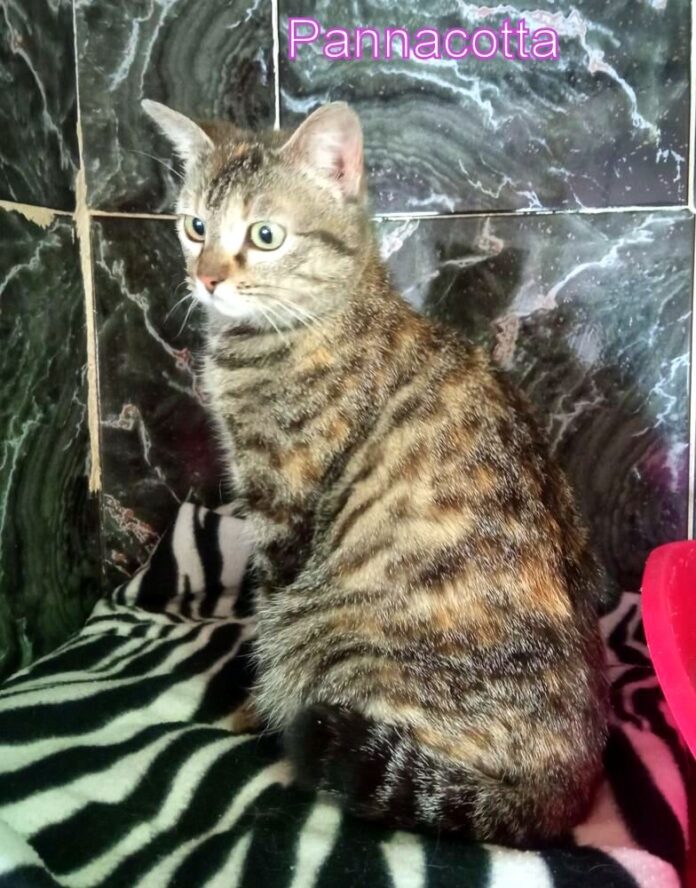 Pannacotta ist ca. ein Jahr alt. Sie ist eine liebenswerte Katzendame, freundlich zu allen Menschen und kein “Zankapfel” mit Argenossen.