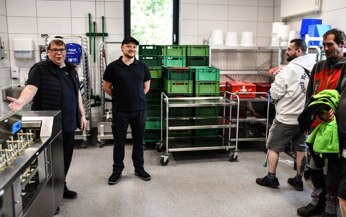 Christian Maus, Mitarbeiter in der Zentralküche, leitete mehrere Führungen selbstbewusst und mit spürbarer Freude: „Ich arbeite jetzt seit drei Jahren hier und bin im Team jemand, der mitarbeitet und unterstützt, wo es nötig ist. Heute ist ein besonderer Tag für uns – weil wir zeigen können, was wir können. Ich wünsche mir, dass wir Menschen mit Behinderung in der Gesellschaft mehr Wertschätzung erfahren. Hier in der Zentralküche klappt das super – wir arbeiten als Team zusammen und helfen uns gegenseitig.“