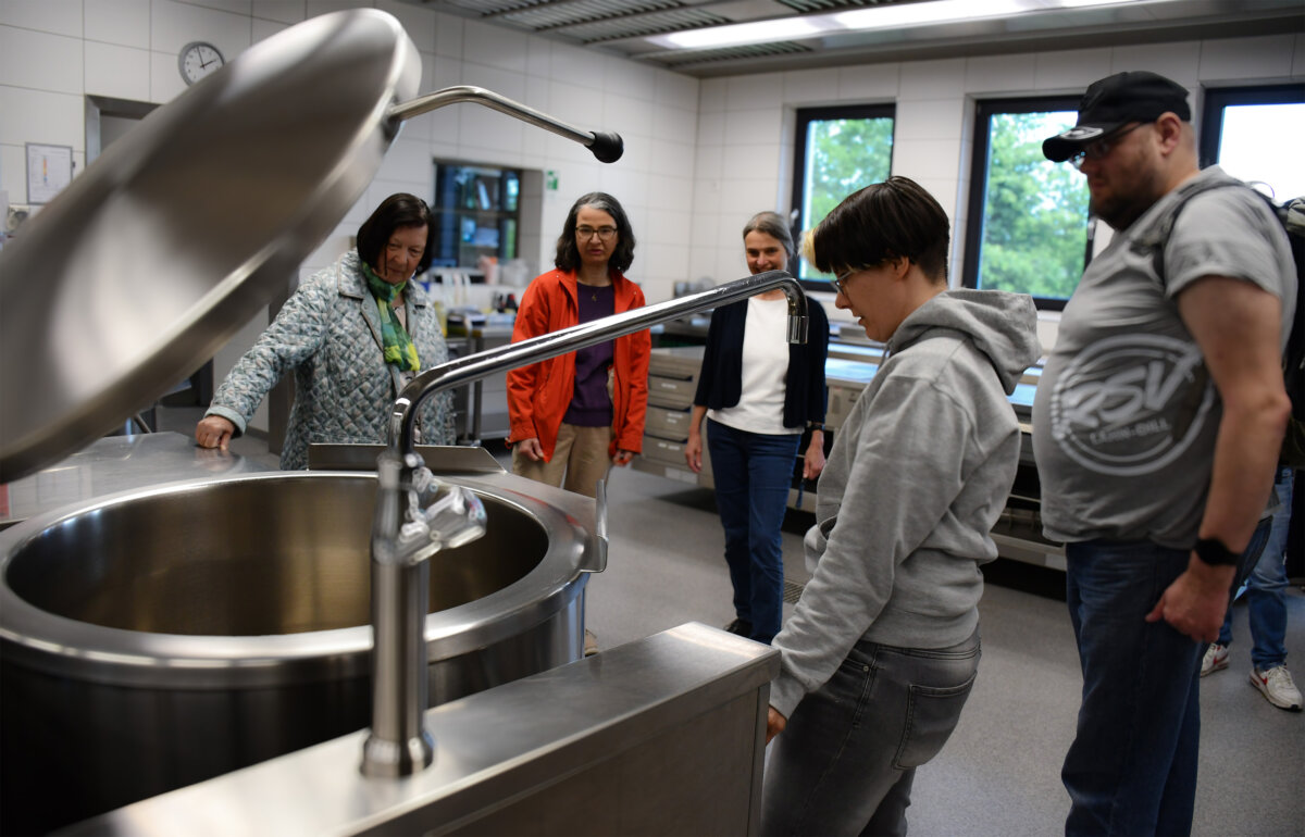 Den ganzen Nachmittag über führten Mitarbeitende mit und ohne Behinderung durch die verschiedenen Bereiche der Zentralküche: Vom Koch- und Kühlbereich über die Spülstraße bis hin zur Logistik. Besonders gefragt: Informationen zum Cook & Chill-Verfahren, das eine schonende und effiziente Zubereitung von täglich bis zu 2.500 Mahlzeiten ermöglicht. Die Gäste zeigten sich beeindruckt von den Abläufen, Dimensionen und dem Engagement der Belegschaft.