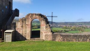 17 Interessierte starteten am Bahnhof in Angersbach zur erweiterten Allee-Runde nach Bad Salzschlirf. Auf Wiesenwegen führte der Weg über eine kleine Holzbrücke über die Lauter bis schließlich die Burgruine Wartenberg erreicht war. Sie liegt im Lauterbacher Graben zwischen Angersbach und Bad Salzschlirf. Um 1220 ließ Friedrich von Angersbach (ab 1232 Friedrich von Wartenberg genannt) auf dem „Wartenbachhügel“ eine Burg erbauen, die 1265 zerstört und nicht wieder aufgebaut wurde. Lange dienten die restlichen Gebäude als Steinbruch der Einwohner der umliegenden Dörfer. Seit Anfang des 19. Jahrhunderts wird die Ruine geschützt, es fanden umfassende Ausgrabungen statt und Teile der Anlage wurden restauriert. Seit dem Jahr 2006 befindet sich in der Kernburg, an der Stelle der einstigen Wasserquelle, eine Brunnen-Attrappe, welche gut in das Bild der Burg passt. Eine gepflegte Anlage mit Blick auf Angersbach.