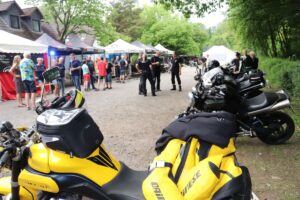 Vier Tage war Grünberg ein Mekka für etwa 200 Yamaha-Freunde aus ganz Deutschland und den weiteren europäischen Nachbarländern Österreich, Niederlande, Belgien und England. Die Eigentümer und Liebhaber der vor 20 Jahren erstmals in einer Stückzahl von 2000 gebauten und heute mit etwa 1000 Stück registrierten 90 PS starken 2Typ-Serien MT-01 und MT-03 führten dabei die langjährige Tradition der in ganz Deutschland schon stattfindenden Treffen fort. Für die im Deutschen Motorradforum eingebundenen „Donnermeister“ standen bei den zwischenzeitlichen etwa 200 Zusammenkünften neben den fachlichen Gesprächen besonders die langjährigen freundschaftlichen Begegnungen im Vordergrund. Ihre langjährige Verbundenheit zu ihren Freunden bewiesen drei mit dem Fahrrad angereiste ehemalige Motorradfahrer sowie auch einige mit dem Auto nachgereiste Partnerinnen. Im Rahmen der von den zu dem Organisationsteam zählenden Jan-Daniel Schneider, Ingo Heinrich und Thomas Hebestreit vorbereiteten diesjährigen Veranstaltung fanden vom Grünberger Jakobsberg aus zudem 10 Gruppenausfahrten mit Strecken zwischen 160 und 350 Kilometer zum gegenseitigen und zum Kennenlernen der Region statt. So besichtigten die Biker bei ihrem Aufenthalt in Hessen neben dem Vogelsberg, der Rhön und der Keltenwelt auch noch die eine oder andere Sehenswürdigkeit. Besonders beeindruckend waren bei den am Abend anstehenden kameradschaftlichen Beisammensein zwei Lasershows. Nach einem durchgeführten Quiz mit auch speziellen Wissens- und Schätzfragen zum Thema Motorrad und „Donnermeister“ wurden die drei erfolgreichsten Gruppen mit einem Preis belohnt.