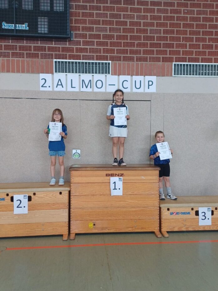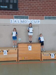 Die sechsjährige Hungener Badmintonspielerin Mia Krüger erobert am letzten Wochenende überraschend Platz 2 im Mädcheneinzel U11 beim Almo Cup in Bad Arolsen. Ihr großer Bruder Finn (8) kämpfte sich auch ins Finale und wurde zweiter im Jungeneinzel U11, während Mias Zwillingsbruder Ole im Viertelfinale gegen den späteren Sieger ausschied.