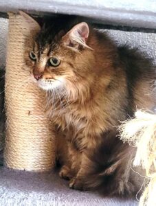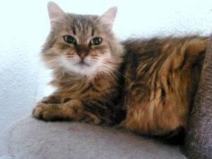 Pushanja geboren Anfang 2024 und Tusja, geboren Anfang 2022,  hängen sehr aneinander. Da sie auch zusammen gefunden wurde, vermuten wir, dass es Mutter und Tochter sind. Tusja ist sehr verschmust, geniest es, wenn ihr längeres Haarkleid gekämmt wird. Sie bringt sich in alle Positionen, damit die streichelnden Hände alle Körperteile erwischen. Sie ist ein wunderbares Tier.