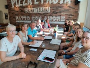 Zur Gießener Reisegruppe gesellten sich zeitweise die Tourist*innen vom Prestelsee, Gerd und Steffi, zudem gab es beim parkrun am Samstagmorgen ein Wiedersehen mit Anna, die lange Teil des Schwanenteich Teams gewesen war, und mit Gabi und Stefan vom Globe parkrun, Schwäbisch Hall. Highlights des Wochenendes waren neben dem Besuch des parkruns die gemeinsamen gastronomischen Aktivitäten, die sehr informative Stadtführung von Anna #NurDerSchirmFehlte und insgesamt das zwanglose und gesellige Beisammensein.