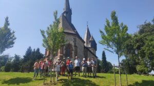 Durch das Thalhäuser Tal, das als Naturschutzgebiet ausgewiesen ist, führte der Weg an Fischteichen hinauf bis zum Spiegelteich – die Kirche auf dem Christenberg spiegelt sich hier bei schönem Wetter im Wasser. Auf weichen Wegen durch den Burgwald mit den höchsten Bäumen „Uschi und Willi“ wurde der 387 m hohe Christenberg erreicht. Hier findet man auch das alte Küster
