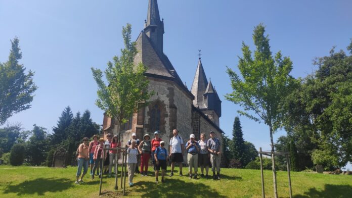 Bei schönem Sommerwetter hatte man von hier oben einen herrlichen Ausblick auf das Marburger Land. Noch ein Blick auf das hinter der Kirche angelegte Labyrinth und dann wieder abwärts Richtung Wetter. Hier ging ein herzliches Dankeschön an Dr. Angela Stender für die Auswahl der Lieblingstour.