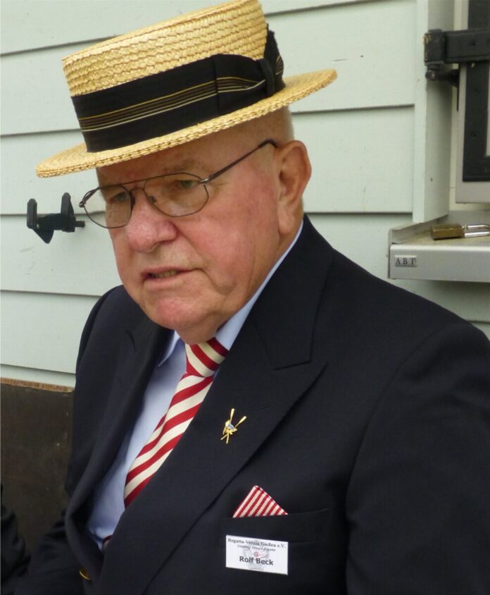 GIESSEN (cm). Der Regatta-Verein Gießen (RVG) trauert um sein Ehrenmitglied Rolf Beck, welches am 15.07.2025 im Alter von 88 Jahren verstarb. Zunächst Schwimmer, wandte sich Beck 1951 dem Rudersport zu, der fortan seine große Leidenschaft sein sollte. Bis vor einigen Jahren saß er regelmäßig im Ruderboot, so z. B. jeden Sonntag mit seinen Ruderkameraden im Mannschaftsboot. In seiner Ruderkarriere errang er insgesamt 267 Siege. 33 Jahre war er Mitglied in der Regelkommission des Deutschen Ruderverbandes (DRV). Bis zum Erreichen der Altersgrenze war er Wettkampfrichter und dies nicht nur auf den Gießener Regatten, sondern u. a. auch bei den Olympischen Spielen 1972 in München. 1978 fungierte er bei den dritten Hessischen Meisterschaften, welche in Gießen auf der Lahn ausgefahren wurden, als Regattaleiter. Zeitlebens setze er sich für den Gießener Rudersport und insbesondere für die Gießener Pfingst-Regatta ein.
