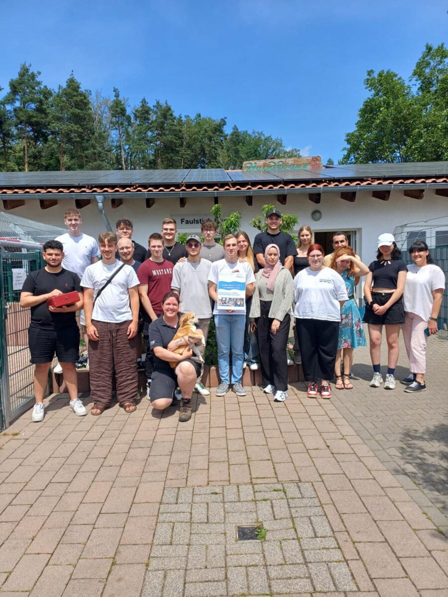 Unter dem Motto „Wir wollen nicht nur reden, sondern auch etwas tun“ engagierten sich die Schülerinnen und Schüler des Ausbildungsberufs Technische Systemplaner:Innen aktiv für den Tierschutz: Durch den Verkauf selbstgebackener Kuchen und Snacks sammelten sie die beeindruckende Spendensumme, die sie dem Tierheim Gießen bei ihrem Besuch persönlich überreichten.