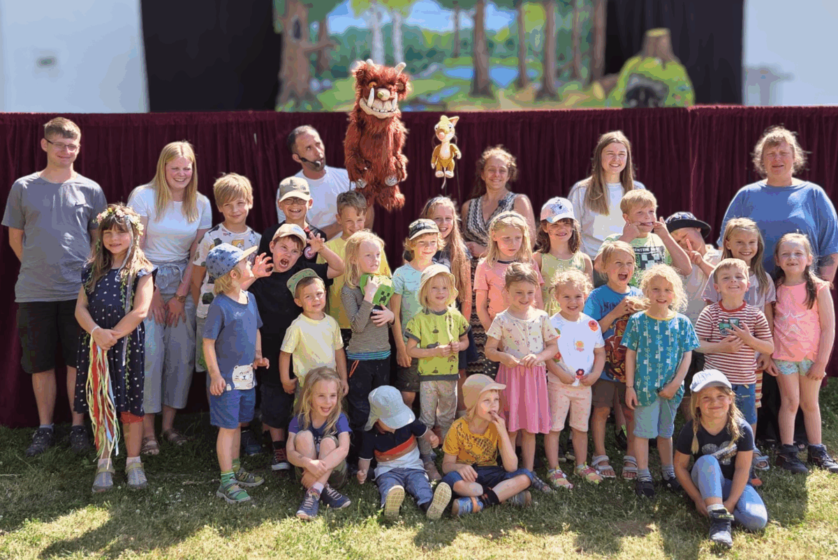 Ein Höhepunkt des Festes war der Besuch des Gießener Figurentheaters, das mit dem liebevoll inszenierten Stück „Der Grüffelo“ Kinder wie Erwachsene begeisterte. Die aufwendigen Figuren und die mitreißende Geschichte sorgten für leuchtende Augen und große Aufmerksamkeit bei Groß und Klein. Ermöglicht wurde dieses besondere Erlebnis durch die großzügige Spende der Brück GmbH, einem bundesweit tätigen Spezialisten für Abriss, Demontage und Gefahrstoffsanierung, dem das Waldkita-Team für sein Engagement herzlich dankte.