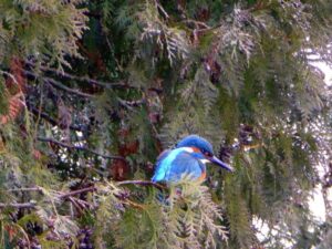 Das hat natürlich der kleine Eisvogel nicht gewusst. Lange saß er auf einem Baum am Teich und beochtete aufmerksam das Wasser. Enttäuscht und sicher auch hungrig flog er nach einer Weile davon.