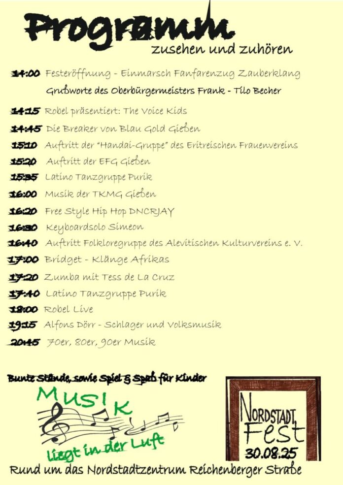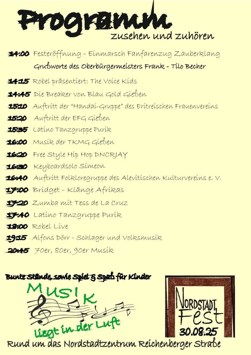 Plakat und Programm (vorläufig – Änderungen vorbehalten) zum Nordstadtfest.
