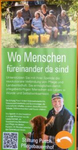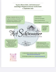Frau Josephin Kiefer hat sich bei Herrn Guido Pusch über die Möglichkeiten erkundigt, wie soziale Landwirtschaft mit Pflege kombiniert werden kann und sich den Pflegebauernhof in Marienrachdorf angesehen, um von deren Erfahrungen zu profitieren. Aus dem Programm von Guido Pusch: „Leichte Tätigkeiten wie Füttern, Gärtnern oder Helfen bei der Ernte schenken unseren Bewohner:innen Teilhabe, Selbstwirksamkeit und Lebensfreude. Gleichzeitig entsteht ein sinnerfülltes Arbeitsumfeld für Pflegekräfte, eine wirtschaftlich tragfähige Perspektive für bäuerliche Betriebe – und ein Ort, an dem das Gefühl von Familie bleibt, wenn Pflege kommt.“