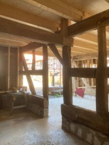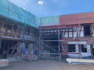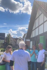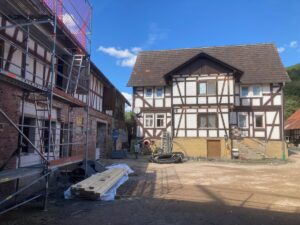In Diedenshausen, einem Ortsteil von Gladenbach entsteht seit einem Jahr ein besonderes Projekt. Familie Kiefer hat sich vorgenommen, aus einem der ältesten Höfe des Ortes einen Pflegebauernhof für 24 Bewohner zu machen. Am Tag des offenen Hofes gab es die Möglichkeit, sich bei einer Führung den Stand der Renovierungsarbeiten anzusehen und Informationen zum Konzept zu erhalten. Es wird neben den Einzelzimmern im Pflegebereich auch ein Haus mit 4 Plätzen für betreutes Wohnen geben. Familie Kiefer lebt seit Oktober 2024 auf dem Hof. Unterm Dach wird eine Ferienwohnung eingerichtet, in der zum Beispiel Angehörige übernachten können. Neben einem Hofladen ist auch eine kleine Werkstatt geplant, in der interessierte Bewohner nach ihren Möglichkeiten arbeiten können. Andere können sich zum Beispiel um die Schafe und Hasen kümmern oder im Bauerngarten oder der Küche helfen. So soll in einer familiären Atmosphäre Pflege und Bauernhof kombiniert werden. Im Innenhof soll ein einladender Platz entstehen. Spenden für einen Baum in der Mitte des Hofes wurden schon gesammelt. Viele Auflagen vom Denkmalschutz, sowie Brandschutzbestimmungen und natürlich die Barrierefreiheit müssen beim Umbau beachtet werden.