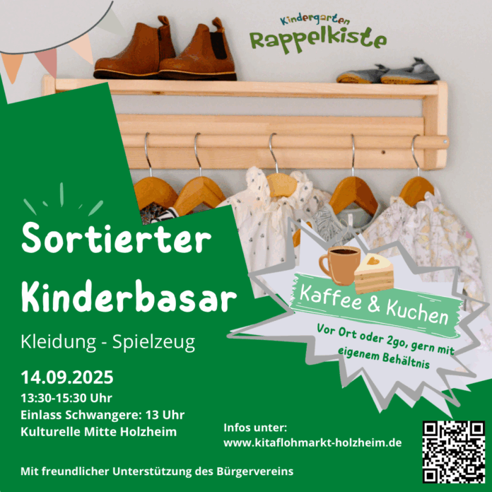 Am Sonntag, dem 14. September 2025 findet von 13:30 bis 15:30 Uhr wieder der halbjährige sortierte Flohmarkt des Holzheimer Kindergartens Rappelkiste in der Kulturellen Mitte Holzheim statt. Angeboten wird Herbst- und Winterkleidung, Spielzeug sowie alles rund um Kind und Baby. Hier ist jeder eingeladen vorbeizuschauen und zu stöbern.