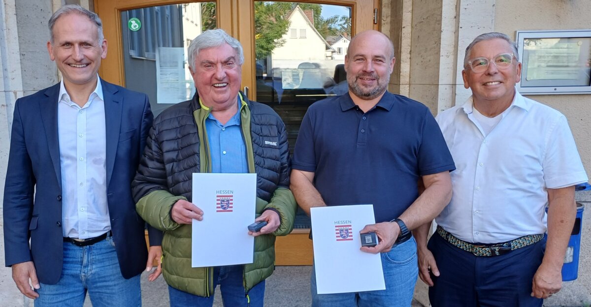 Laubach – Strahlende Gesichter hatten die beiden Ehrenamtler Norman Rohn und Karl-Heinz Lind, als ihnen der Laubacher Bürgermeister Matthias Meyer in einer Feierstunde am Freitagnachmittag im Laubacher Rathaus, nach seiner Laudatio, jeweils den Landesehrenbrief des Hessischen Ministerpräsidenten überreichte.