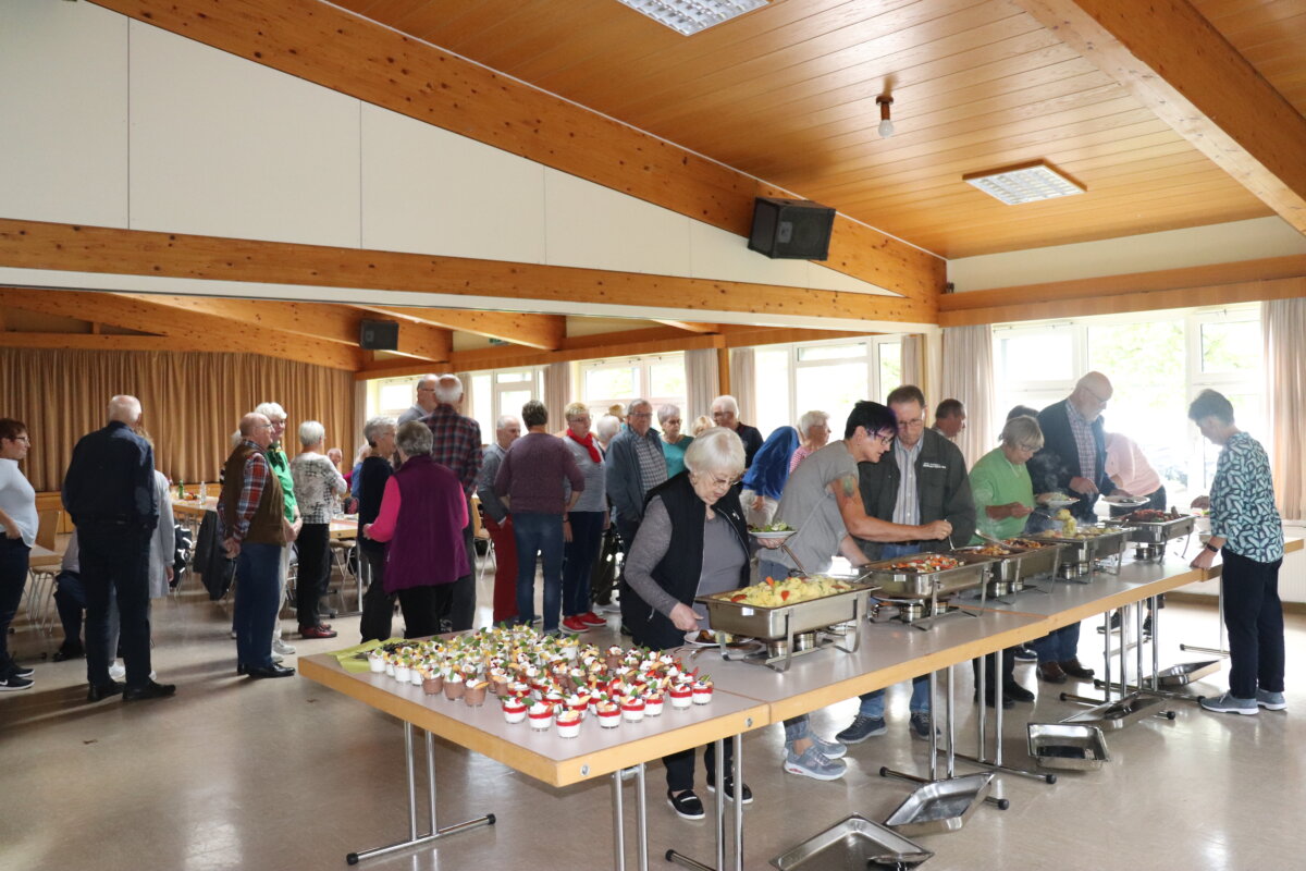 Beim erneut wieder gut angenommenen ersten Treffen nach der Sommerpause stand für die Seniorinnen und Senioren aus Lardenbach und Klein-Eichen wieder ein gemeinsames Mittagessen auf dem Programm. Die 54 Anwesenden genossen dabei das Angebot mit zwei Fleischgerichten. Als Beilage stand neben Kartoffeln und Knödeln auch gemischter Salat, Rotkraut und Meerrettich zum Verzehren bereit. Abgerundet wurde der reichhaltige Mittagstisch mit einer leckeren Süßspeise. Neben dem gemeinsamen Essen nutzten die Besucher auch Begegnung zur regen Unterhaltung und zum Gedankenaustausch.
