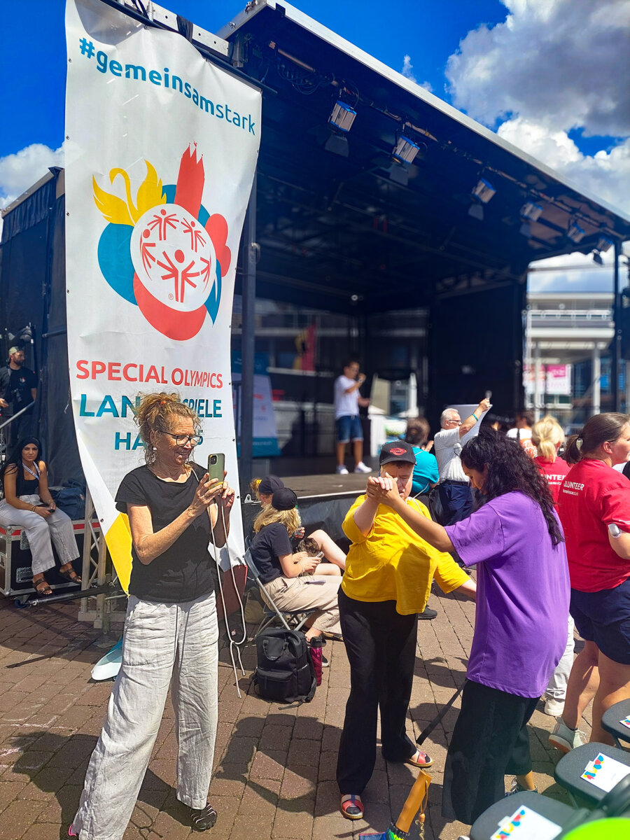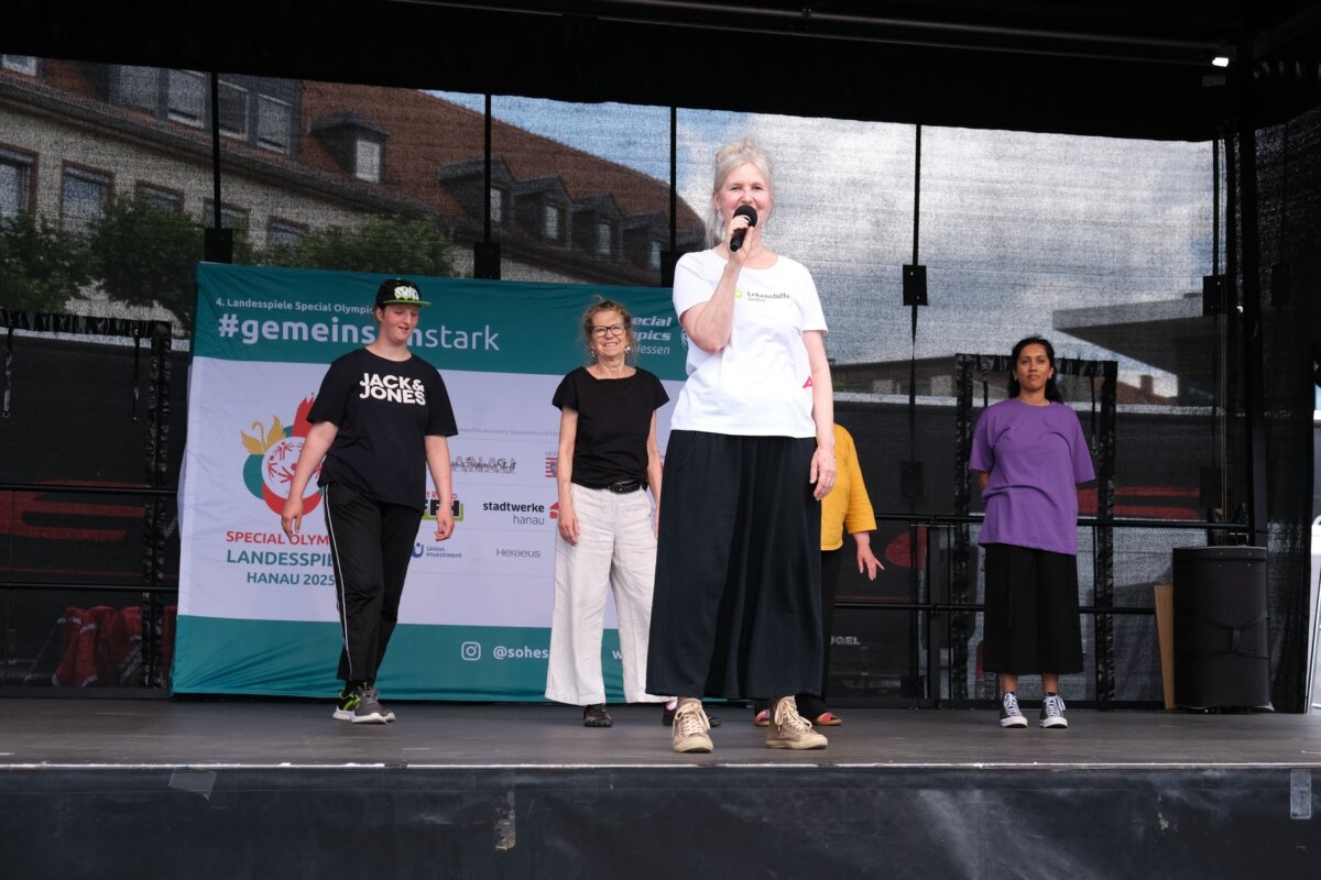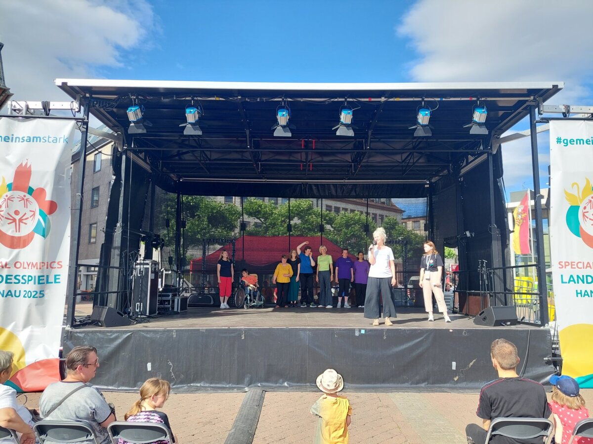 Hanau/Gießen – Das inklusive Tanzprojekt „MehrBewegen“ der Lebenshilfe Gießen hat im Sommer gleich zwei große Auftritte gefeiert. Vom 23. bis 26. Juni 2025 nahm die Gruppe an den Special Olympics Hessen in Hanau teil. Beim Wettbewerb Street Dance überzeugten die 13 Tänzerinnen und Tänzer und wurden für die Nationalen Spiele 2026 in Saarbrücken nominiert. Bei der Abschlussfeier auf dem Hanauer Marktplatz sorgte das Team mit einer schwungvollen Mitmachaktion zu „Hands Up“ für Begeisterung.