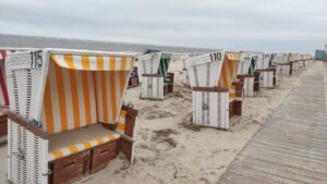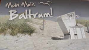 Nach zwei Tagen fuhren die Teilnehmer*innen mit dem Bus Richtung Neßmersiel. Hier war wegen einer Sturmflut der Hafen gesperrt und die Fähre konnte erst nach drei Stunden Wartezeit nach Baltrum übersetzen. Nachdem das Gepäck in Containern verstaut war, erreichte man nach ca. 30 Minuten – vorbei an den Seehundsbänken – Baltrum, mit einer Fläche von 1,5 x 5 km die kleinste der ostfriesischen Inseln. Baltrumer
