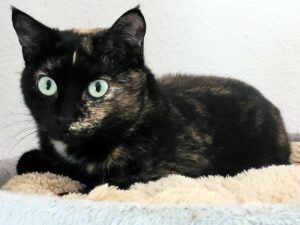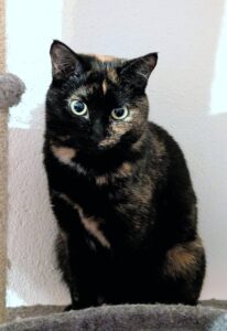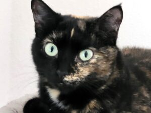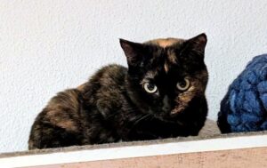 Cloe ist eine schüchtere Katze, die einige Zeit benötigt, bis sie Menschen vertraut. Wir wissen nichts über ihre Vorgeschichte.