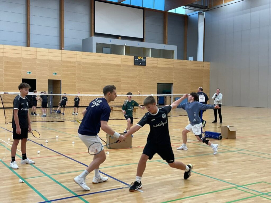 Ein tolles Highlight erlebten die jungen Hungener Badmintonspielerinnen und Badmintonspieler am Samstag den 01.11. Im Rahmen der Hylo Open in Saarbrücken hatte der Badminton Bundesligist BC Bischmisheim zum “Training mit den Besten” geladen. Gespannt, ungeduldig und auch etwas aufgeregt warteten die Kinder und Jugendlichen auf das einstündige Training, denn unter den Trainern erkannten sie schnell die Olympiateilnehmer und aktuellen Nationalspieler Marvin Seidel und Isabell Lohau. Auch der ehemalige langjährige Weltklassespieler Doppel und Mixedspieler, sowie Olympiafünfte, Michael Fuchs war da, um sich den Nachwuchs der Schäferstädter zu widmen. Dazu gesellten sich noch ehemalige Bundesligaspieler und Nachwuchskräfte des Stützpunkt als Trainer.
