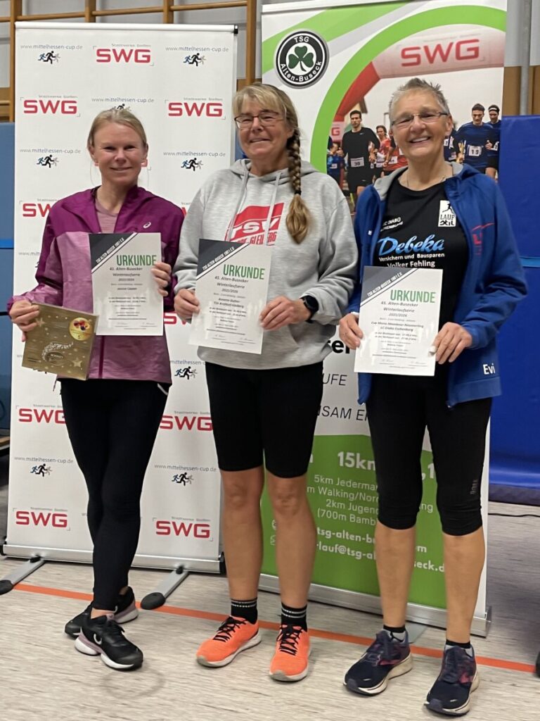 Insgesamt drei weitere schnelle TSV-Läuferinnen holten Podestplätze in ihren Altersklassen: Laura Bareth (2. weibl. HK; 46:25), Orianne Perdrix (3. weibl. HK; 48:37) und Lisa Hansen (2. der W40; 48:40).