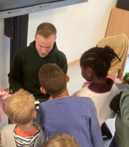 An der Hedwig-Burgheim-Schule war am Vorlesetag ein ganz besonderer Autor zu Gast: Thomas Böhme. Der Rollstuhlbasketballer hat sein erstes Kinderbuch geschrieben und in der Grundschule vorgestellt. Bevor er aus „Tommy und das große Basketball-Abenteuer“ vorlas, wurde er von Schulleiterin Nina Schäfer begrüßt. Alle Kinder der vier Jahrgänge und ihre Lehrkräfte hatten sich in der Mensa versammelt. Schon zu Beginn wurden viele Fragen gestellt und alle staunten über die vielen sportlichen Erfolge des Gastes. Dann erzählte Thomas Böhme etwas über die Entstehung des Buches und las den Beginn der Geschichte vor, die von einem kleinen Jungen im Rollstuhl erzählt, der Basketball spielen möchte. Die Kinder lauschten gespannt und applaudierten anschließend begeistert.