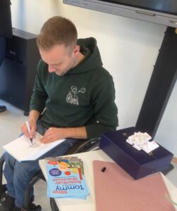 Thomas Böhme lebt in Langgöns und spielt beim RSV Lahn-Dill. Er engagiert sich über den Sport hinaus für Inklusion und setzt sich dafür ein, dass Kinder mit und ohne Behinderung gleichberechtigt leben und lernen können. Wir hoffen, dass Thomas Böhme Gefallen am Schreiben von Geschichten für Kinder gefunden hat und es eine Fortsetzung von „Tommy“ geben wird. Wer ihm folgen möchte findet ihn auf Instagram unter tommyboehme13.