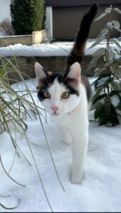 Die schöne Tricolorkatze ist eine Freigängerkatze und wäre in reiner Wohnungshaltung sehr unglücklich.