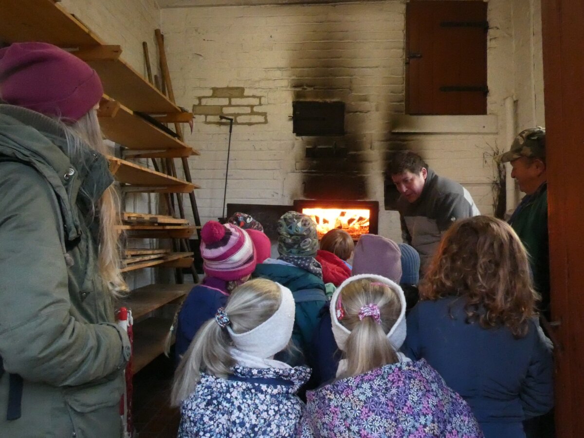 Sebastian Schwarz, Bürgermeister von Allendorf (Lumda), und Herbert Schmidt vom Zusammenschluss der „Wenner Ronde“, der in Winnen unter anderem das jährliche Backhausfest organisiert, erklärten den Kindern anschaulich, wie früher ohne eigene Küchenöfen gebacken wurde.