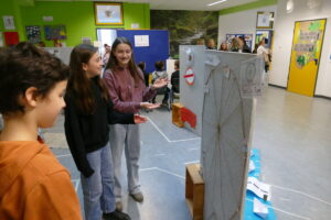 Anlässlich unseres Tages der Offenen Tür mit Informationsveranstaltung zum Übergang 4/5 erkundeten die interessierten Grundschulkinder unsere Schule und erlebten dabei faszinierende Workshops aus den Bereichen Naturwissenschaften, Technik, Musik, Kunst und vieles mehr. Begleitet wurden sie dabei von älteren Schülerinnen und Schüler unsere Schule, die an diesem Tag als Guides tätig waren. Nach der Elterninformationsveranstaltung mit musikalischen Darbietungen gab es schließlich weitere Möglichkeiten die Schule zu erkunden und dabei insbesondere die Lernebenen der Jahrgänge 5 und 6, die neu gestalteten Ebenen der Jahrgänge 7/8 und Ergebnisse aus dem Unterricht zu entdecken. Des Weiteren konnten die interessierten Schülerinnen und Schüler weitere Präsentationen und Experimente ausprobieren oder auch einfach nur bei Kaffee und Kuchen, organisiert von Elternbeirat und Förderverein der Schule, miteinander ins Gespräch kommen. „Das hat heute richtig Spaß gemacht. Die Zeit ist total schnell vergangen.“, war die Reaktion eines Mädchens.