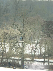 Während der Baumfällsaison, die bis Ende Februar andauert, wird diese Plattform Tag und Nacht „bewohnt“ sein. Die Initiative lädt täglich um 16 Uhr ein zur Unterstützung und zum Austausch über Ideen zu weiteren Protestaktionen.