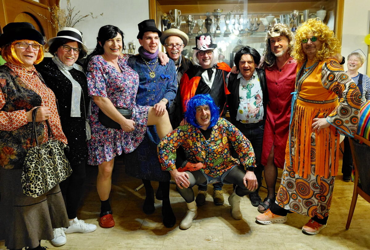 Das große Finale läuteten die „Floppers“ (Martin Diehl, Gerhard Schneidmüller, Matthias Rüb und Michael Wagner) mit einem heiteren Medley ein, das den Sitzungssaal endgültig in einen Tanzclub verwandelte. Bevor die Lichter ausgingen, hatte Günther Dickel noch ein paar Anekdoten parat – über Erlebnisse mit erst bissigen, dann aber doch netten Frauen. Erst nach Mitternacht kehrte Stille im „Grünen Baum“ ein, als die Lichter einer alles überstrahlenden Chorifeen-Veranstaltung erloschen. Ein dreifach donnerndes Helau auf diesen gelungenen Abend!